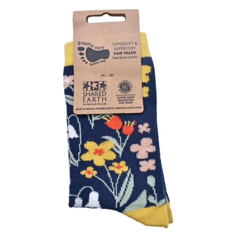 Bamboo Socks – Yellow / Blue Floral – Size: 3-7