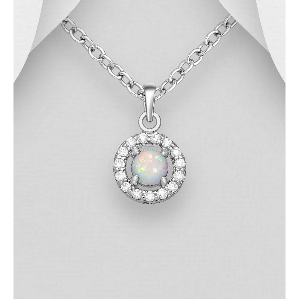 White Opalite Pendant – Cubic Zirconia